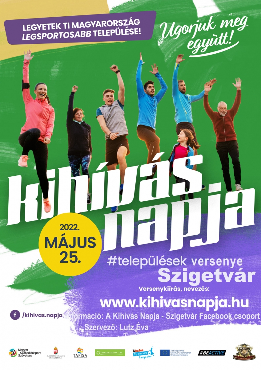 Városunk 2022-ben ismét benevezett a Kihívás Napja települési versenyébe. A verseny lényege, hogy a Kihívás Napján, 2022. május 25-én 0:00 órától 21:00 óráig minél több, minimum 15 perces pulzusnövelő aktivitást végezzünk Szigetvár területén.