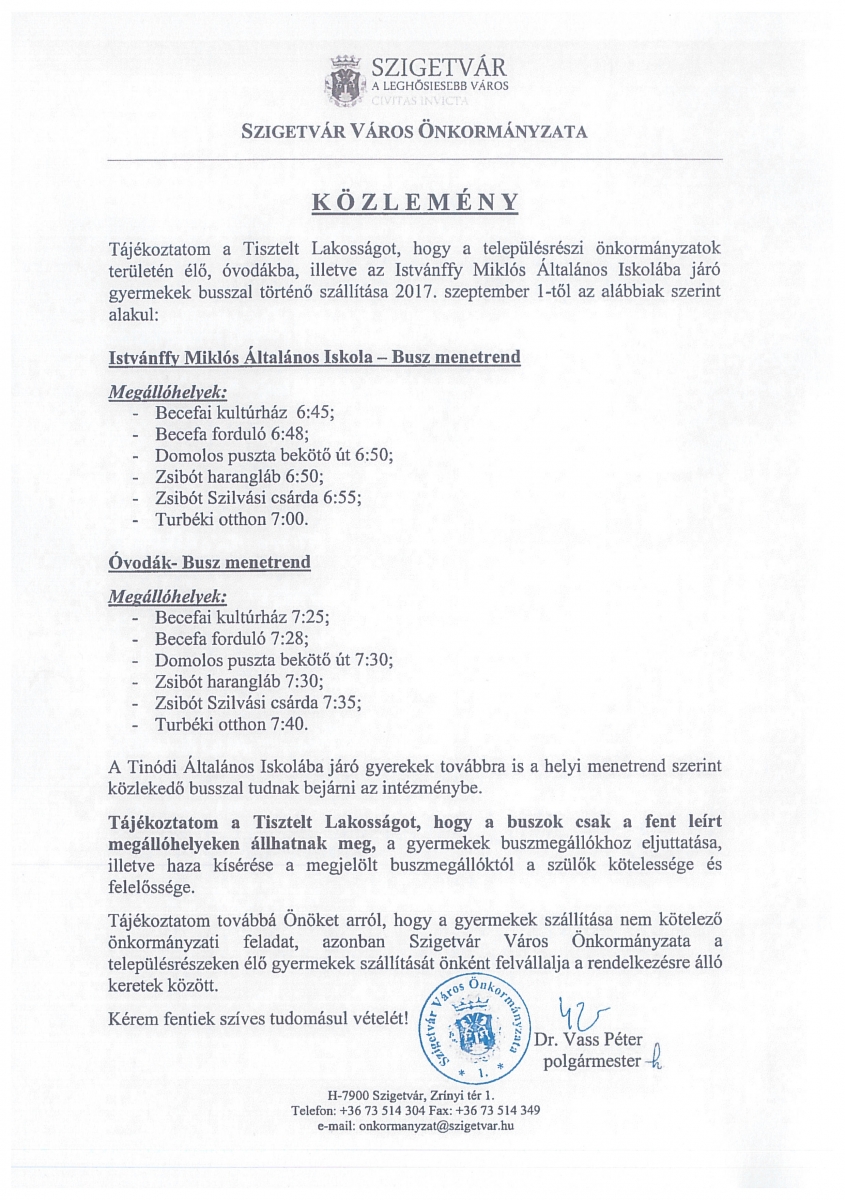 Közlemény - gyermekszállítással kapcsolatban