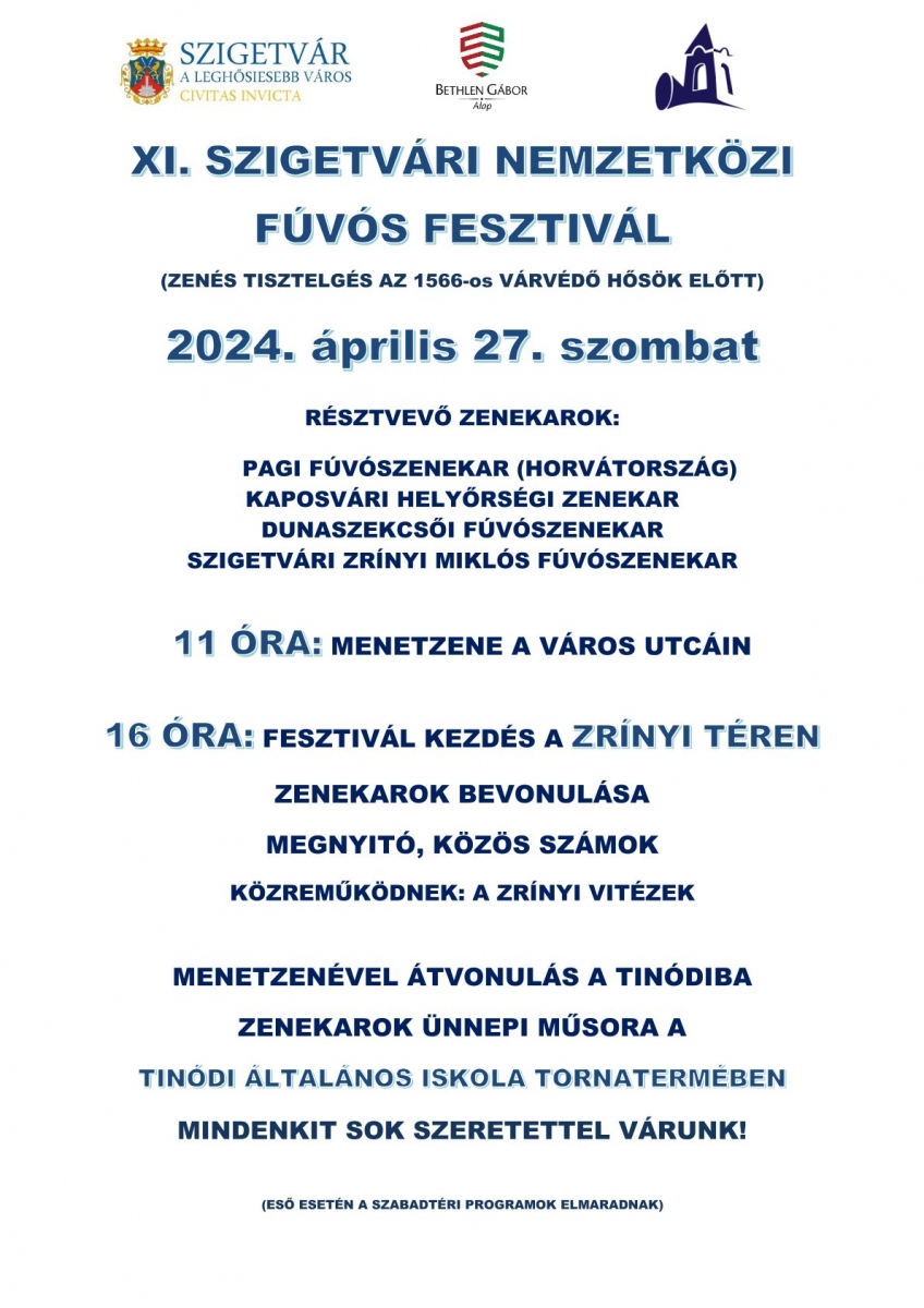 Sok szeretettel várunk minden kedves zeneszerető polgárt április 27-én a XI. Szigetvári Nemzetközi Fúvós Fesztivál programjaira.