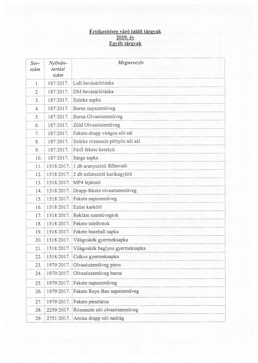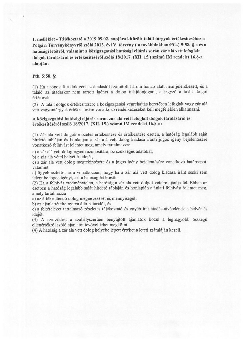 Értékesítési hirdetmény talált ingóságokra